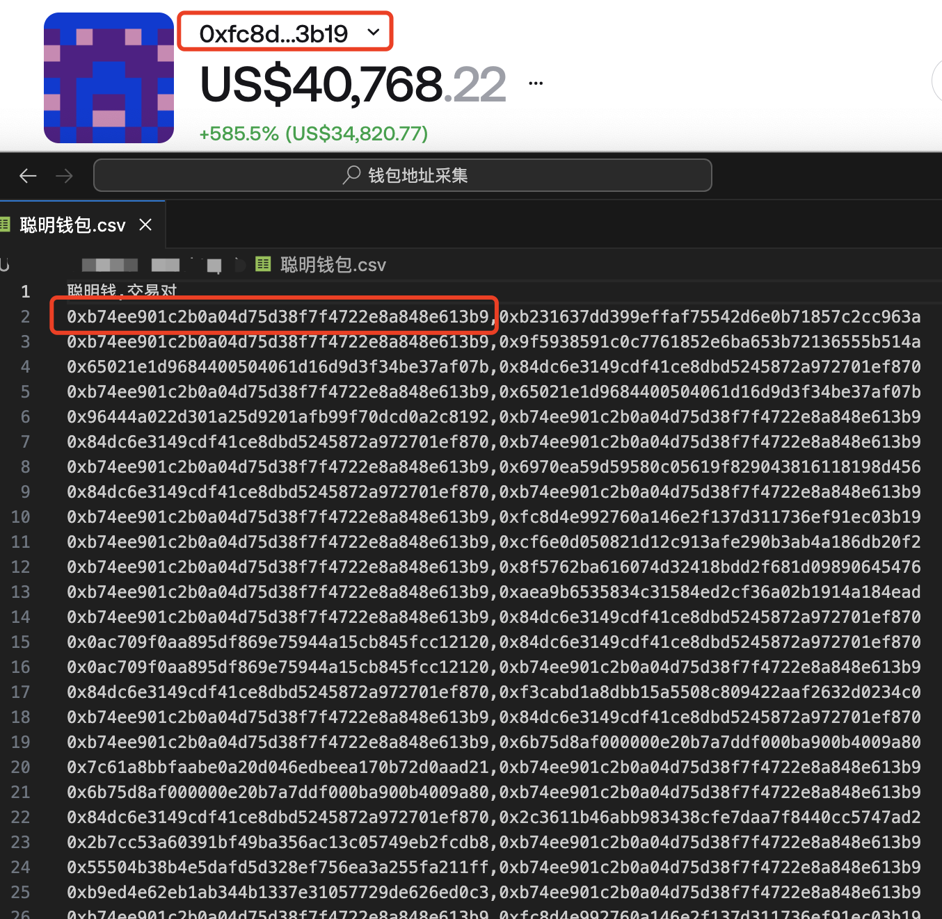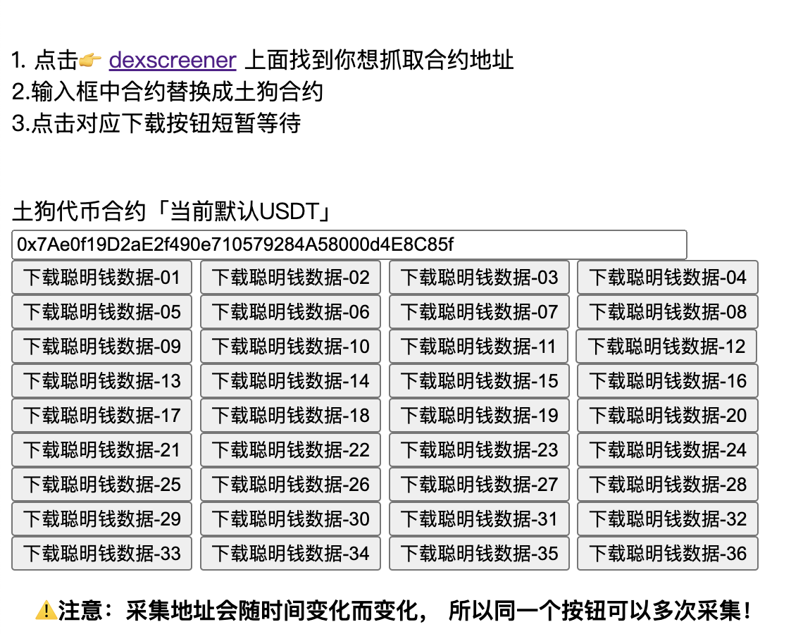 点击下载对应数据, 会批量的返回一批 “聪明钱”钱包
