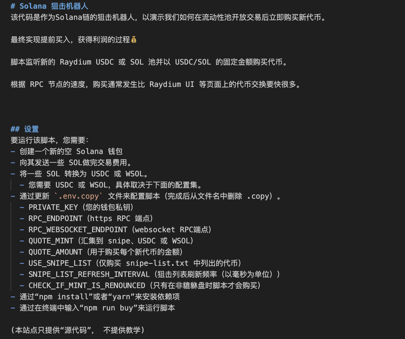 【软件脚本】Solana链狙击机器人|抢新狙击交易|自动化狙击|合约貔貅检查|完整源码|支持二次开发